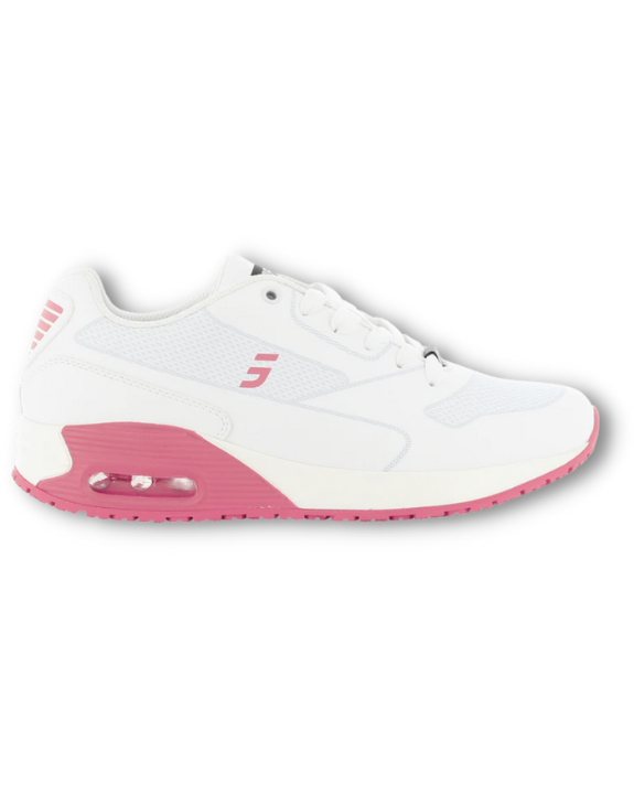 Das Modell ELA ist ein lässiger, modischer Sneaker, der völlig an die Bedürfnisse der Gesundheitsfachkräfte angepasst worden ist. Dieser geschlossene Schuh mit Schnürsenkeln unterstützt und schützt Ihren Fuß in vollem Maße. Das Air-Element in der Laufsohle gewährleistet eine optimale Stoßdämpfung. Die herausnehmbare Innensohle aus Memory Foam garantiert optimaler Komfort. Das Obermaterial besteht aus Leder und ist einfach mit einem feuchten Tuch und Seife zu reinigen. Die Laufsohle ist rutschhemmend und ist mit einem antistatischen Einsatz ausgestattet.